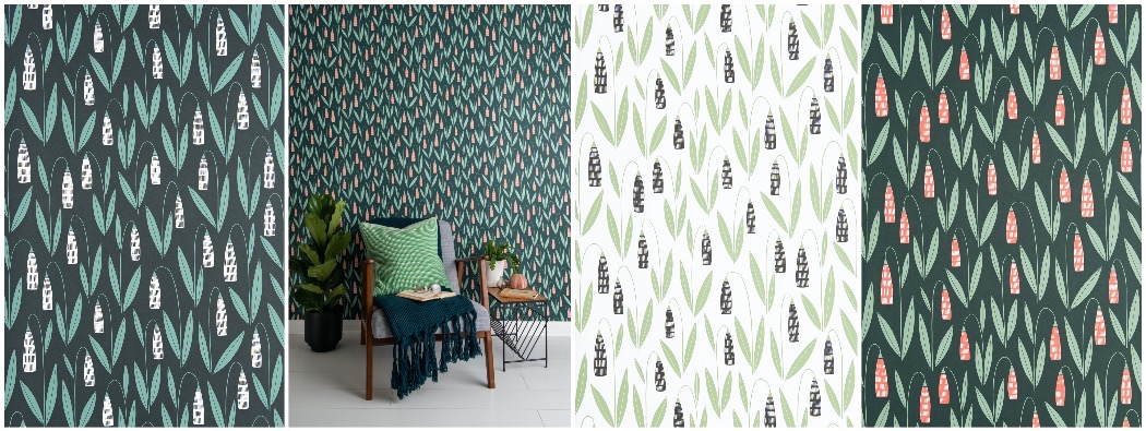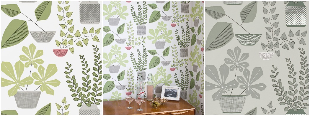 It’s no surprise that this design is filled with a lot of green! Featuring an eclectic mix of plants and pots, there are two green colourways in this pattern – Olive, which features pops of pink and brighter tones of green and Brampton, which is an overall more neutral sage colourway.