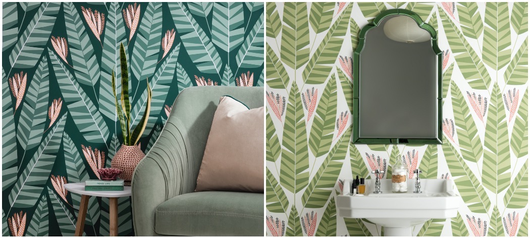 There’s no denying that the Jungle wallpaper will help you make a statement in green. Featuring giant topical banana plant leaves in a fan-like pattern, the Palm and Rainforest colourways offer two different ends of the green colour spectrum, making it a versatile choice. Ideal for bathrooms or feature walls, allow yourself to really step into the jungle with this wallpaper!