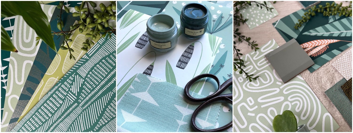 If you are thinking of combining different tones of green be sure to get plenty of samples of your paint, wallpaper and fabrics. Incorporate any other colourways, textures and finishes that are going to be in your interior scheme into a moodboard to really see how your nature-inspired green space will come together.