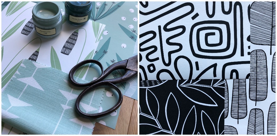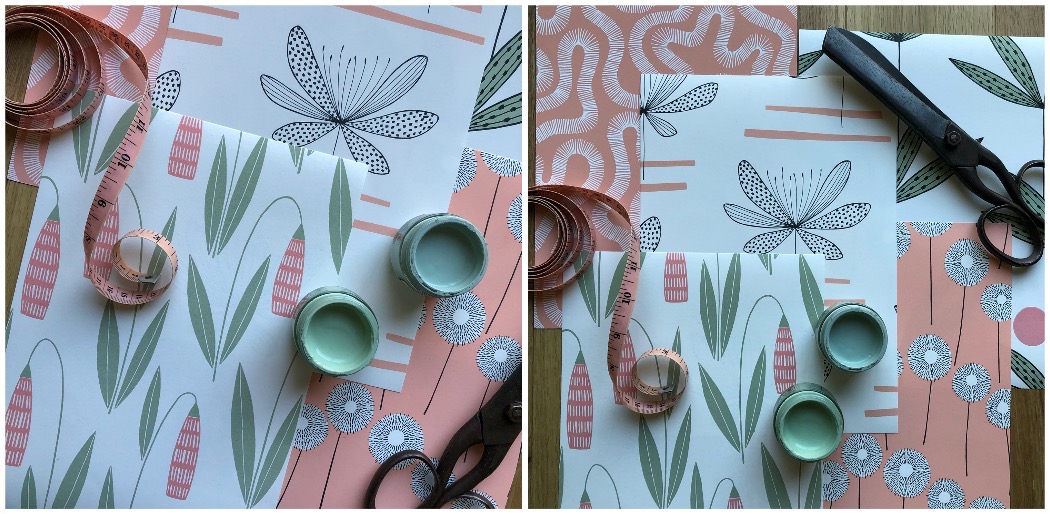 Once you’ve finalised your moodboard, think about placing it in the room you’re working on. If you’ve got a piece of furniture that you know will place a key part, place it on top of it and make sure you’re happy with your colour and pattern choices. Placing it in situ will also help you see how different colours, finishes and patterns will look in the room’s light, which is important when making colour choices!