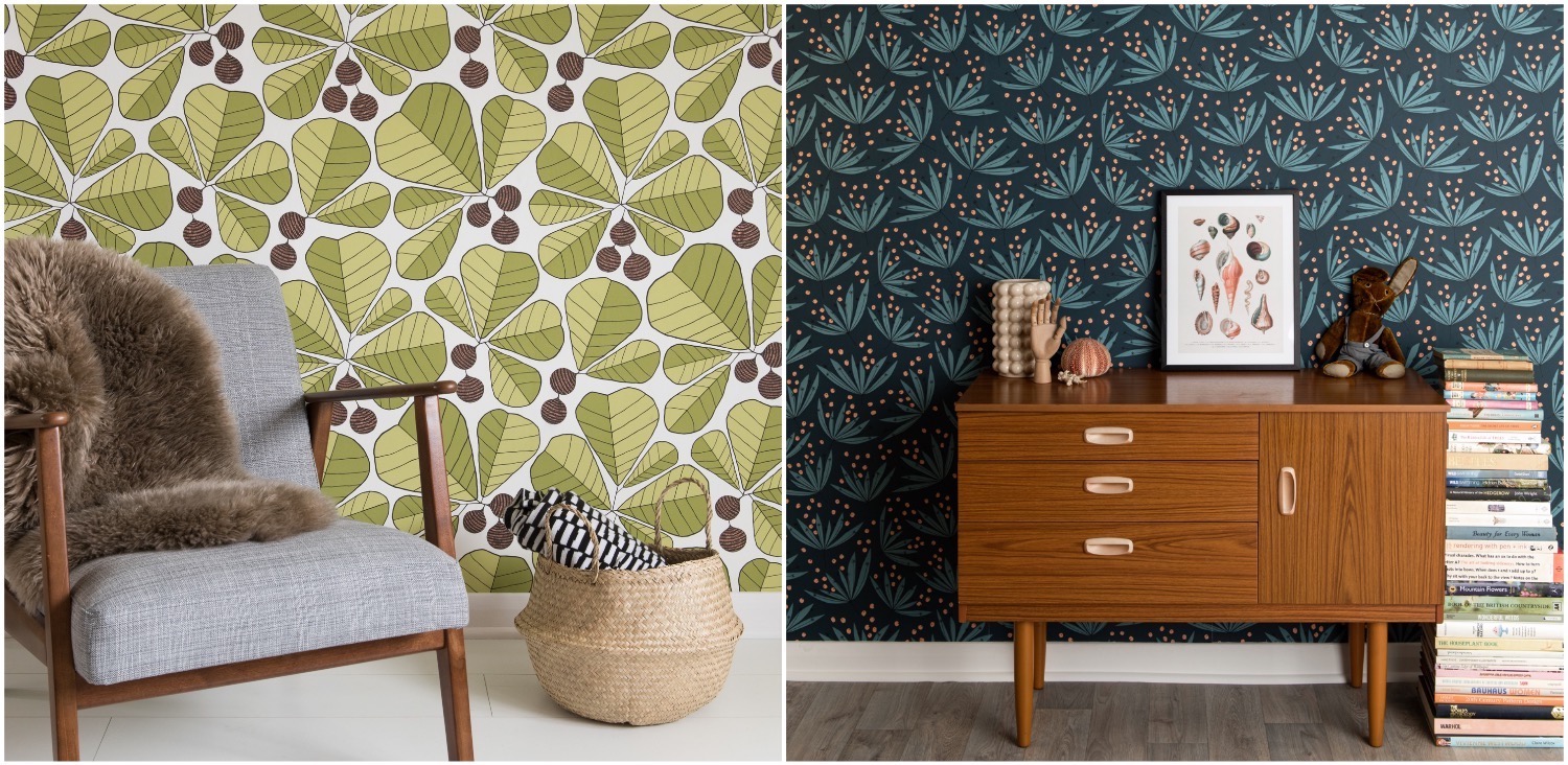 The mid-century influence that comes through in our graphic illustrative designs is what makes them pair so well with vintage style furniture. Mixing the old with the new is something we love to see, and our wallpapers and fabrics are the perfect way to do it.