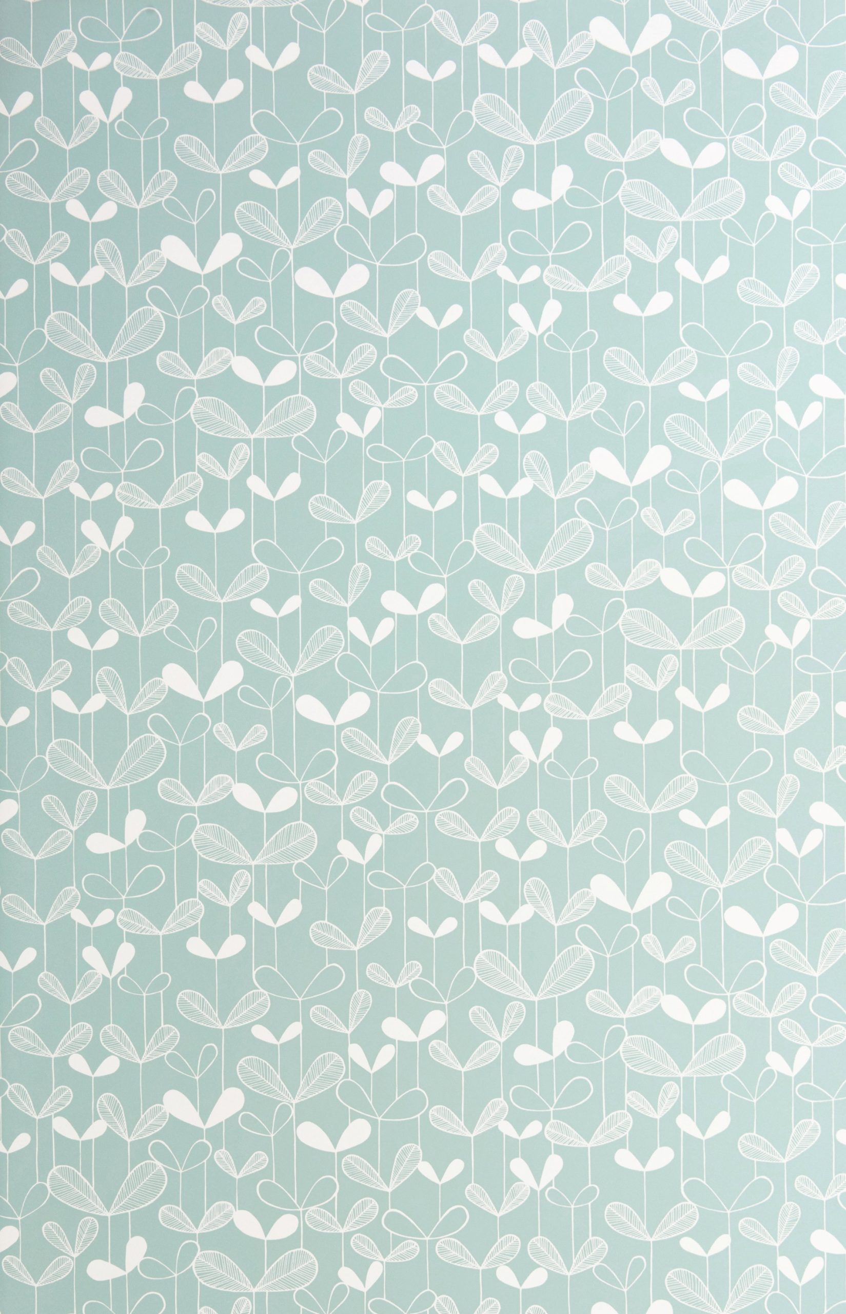 Carefully drawn and developed into a seamlessly repeating pattern, small delicate leaves energetically grow from thin stems. The palette is refined to single colours to complement the illustration.