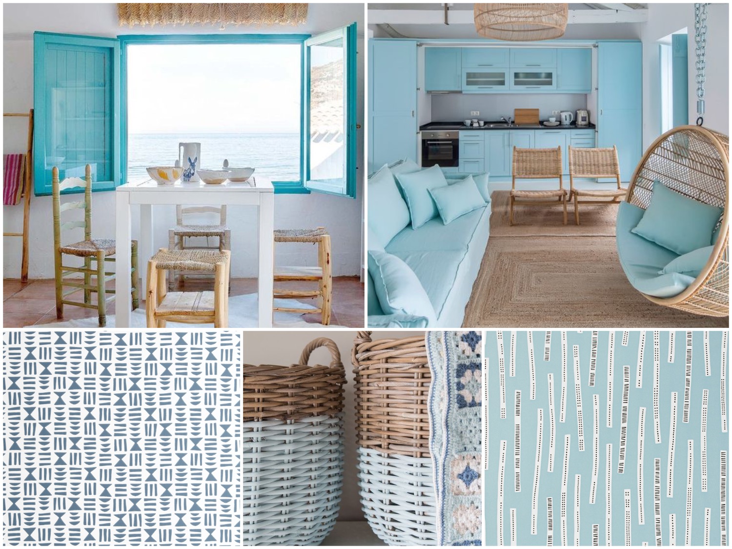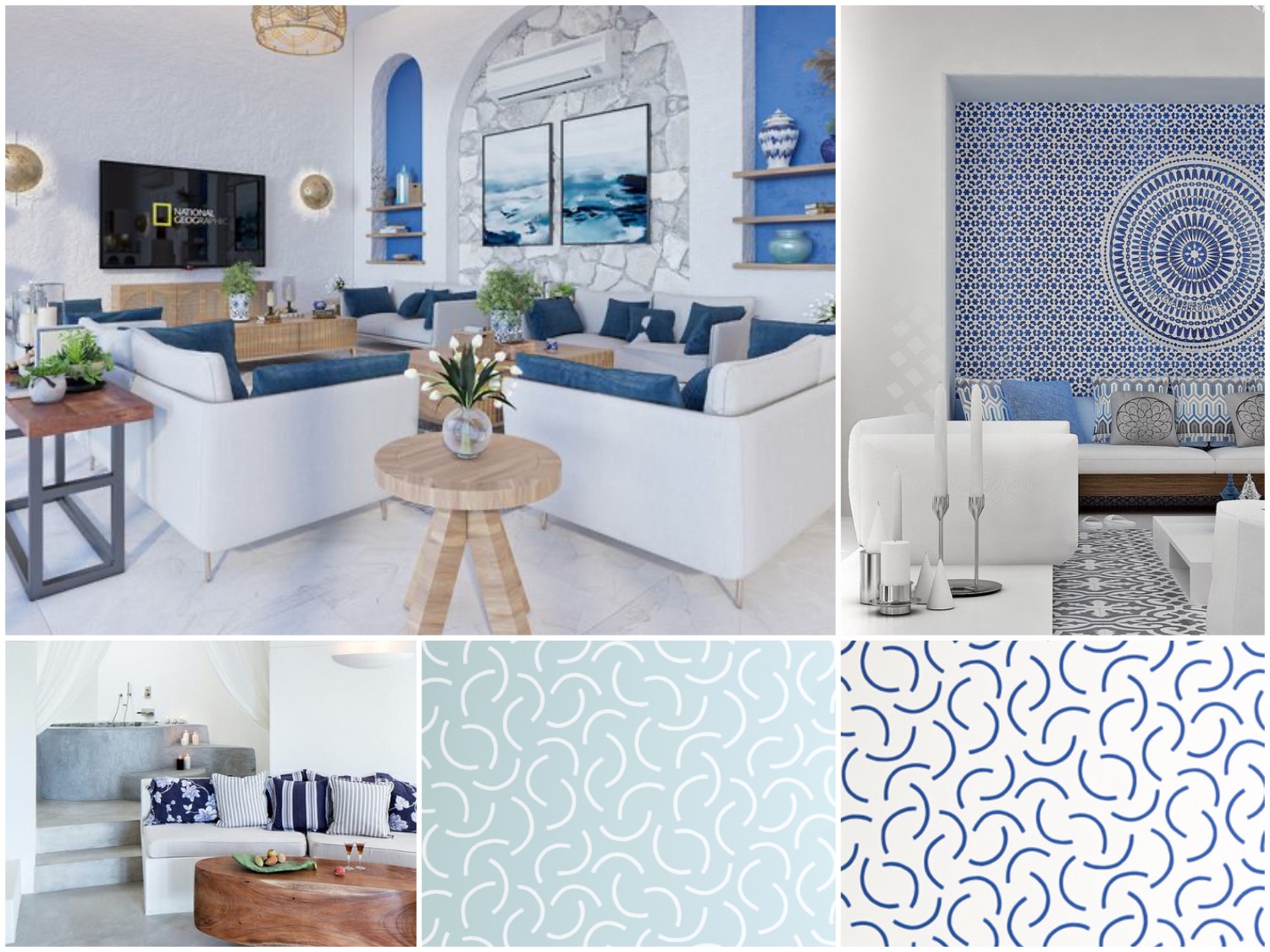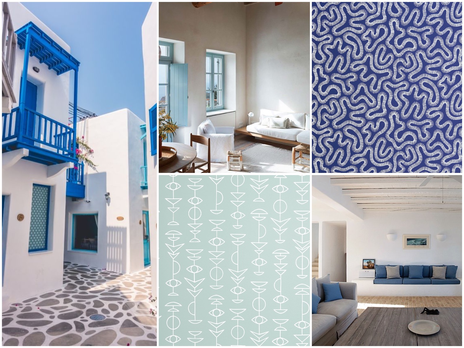 For the ultimate Greek-inspired interior, match the two symbolic colours with neutral palettes and natural materials. Our Coral Lapis wallpaper is the perfect option for this particular scheme as it captures both the colours and the coastal themes of the Greek style perfectly.